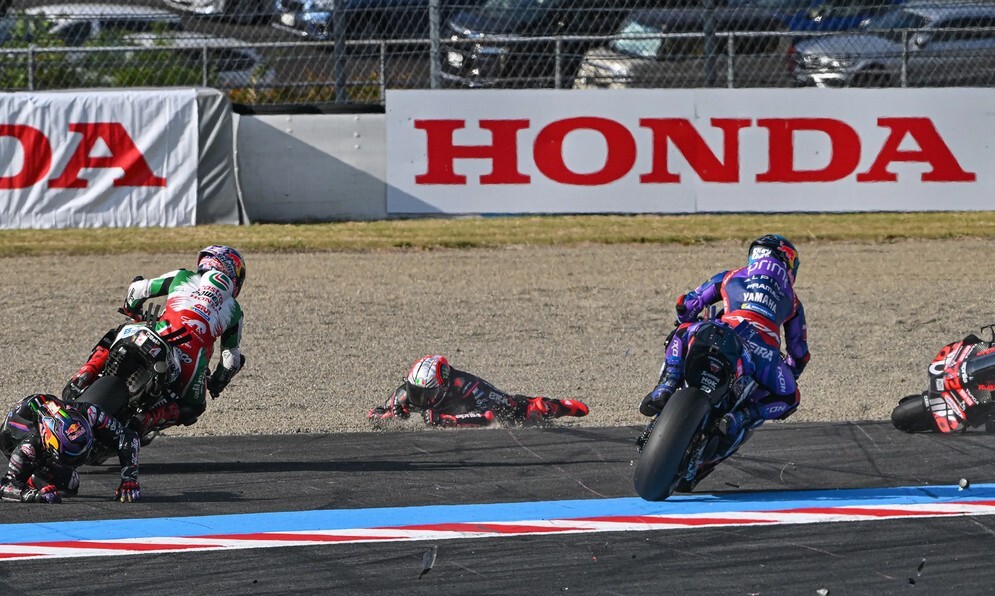 Sprint Race byl ve znamení Bagnaiova útoku na ztracené pozice. Hned po startu se ujal vedení a zvítězil způsobem start – cíl. Z počátku jel na druhém místě Mir, ale ve třetím kole jej předjel Acosta a v osmém kole Marc Marquez. Přesunům, ale ještě nebyl konec. Marquez se stačil ještě dotáhnout na Acostu a v závěru mu sebral druhé místo. Z toho co bylo vidět v televizi, jsem měl pocit, že Marquez svým způsobem Bagnaiovi vítězství přál. Říkám svým způsobem, protože jistě není Bagnaiův fanoušek, ale svým způsobem. Co všechno se dělo v pozadí závodů se můžeme jenom dohadovat. Buďto se v budoudnu něco z toho dozvíme, nebo spíš se na to zapomene a to co nyní rozhýbává všelijaké diskuze a dohady zvolna vyšumí. Sprint Race byl ale důležitý jinou událostí. Hned v úvodu došlo k větší kolizi, ve které účinkovali Bezzecchi, Martin, Rins, Zarco a Miller. Bezzecchi s Martinem šli na zem, ostatní to ustáli v sedlech. Martin, který vynechal část sezony pro zranění a sotva se dostával do formy, to odnesl zlomenou klíční kostí. Takže má zase stopku a letošní sezóna je nejspíš v pekle.