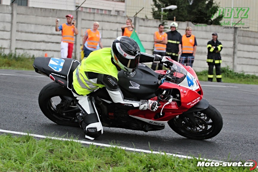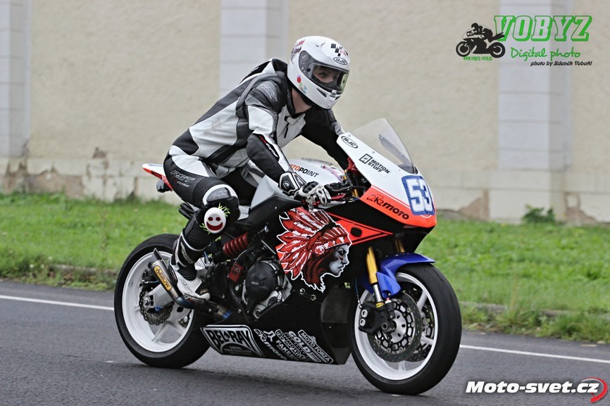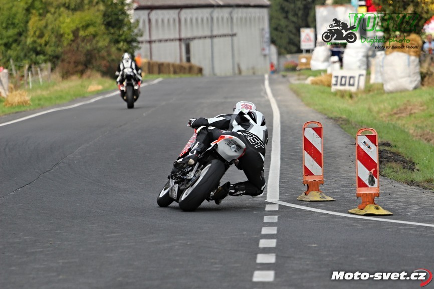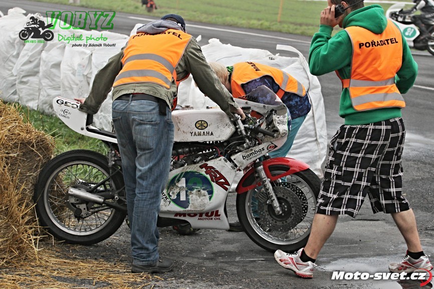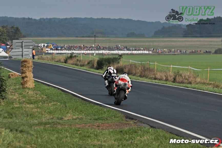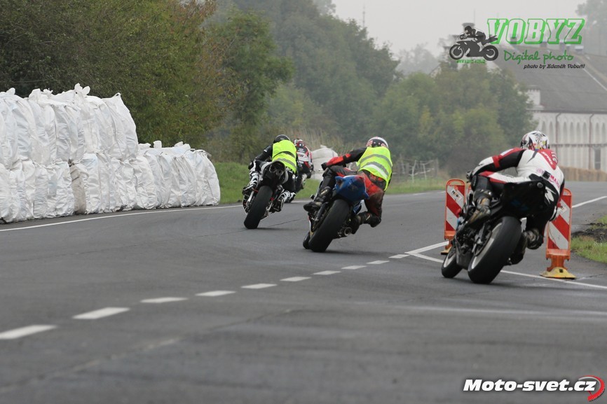Kéž by se jim podařil splnit v příštím roce jejich plán zrekonstruovat silnici i ve zbylém přímém úseku mezi první a druhou křižovatkou. Letos to tam vypadalo jako na dálnici D1, díky mobilním patníkům, kterými byl vytyčen retardér na konci dlouhé rovinky. V kombinaci s vyjetými kolejemi na tomto úseku a s mokrým povrchem, ač se to na první pohled nezdálo, opravdu velmi nebezpečné řešení. A jejich použití na vnitřní straně silnice v rychlé pasáži před benzinovou pumpou - to už hlava nebrala ani přihlížejícím divákům. Jezdci průjezd tomuto samozřejmě přizpůsobili a vše bylo OK až do té doby, dokud v zaváděcím kole restartovaného mokrého závodu třídy 600 ccm v oném retardéru nedošlo