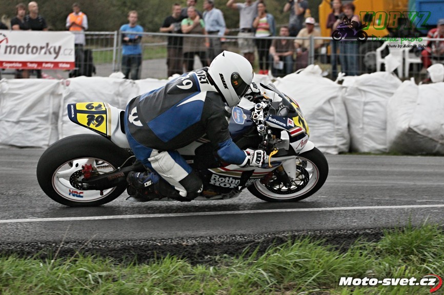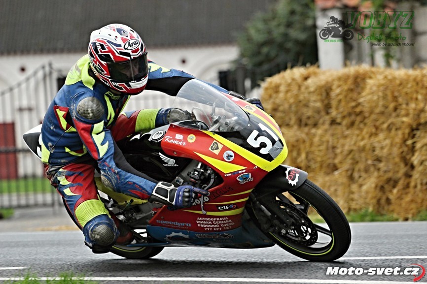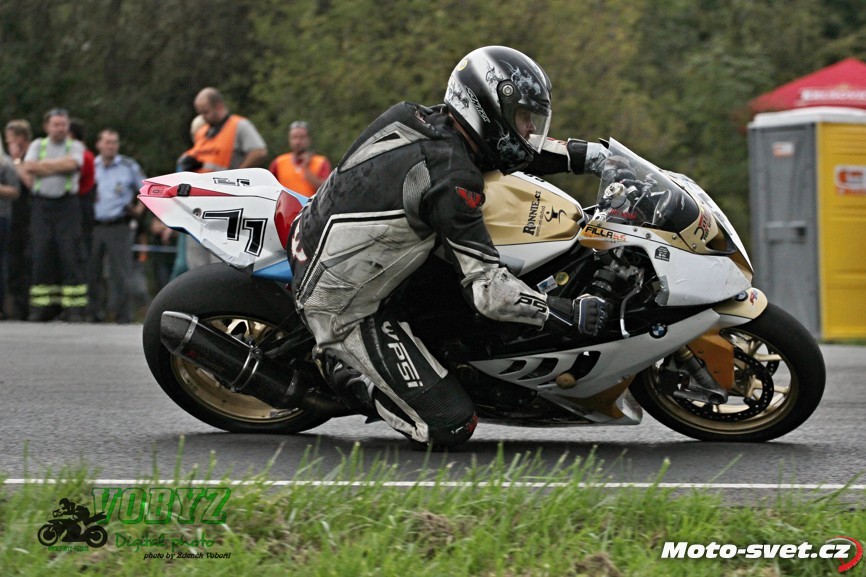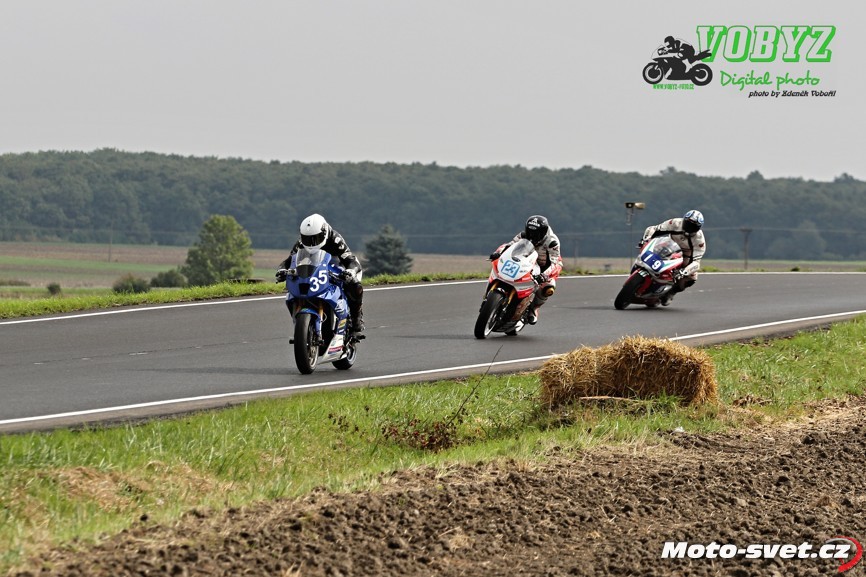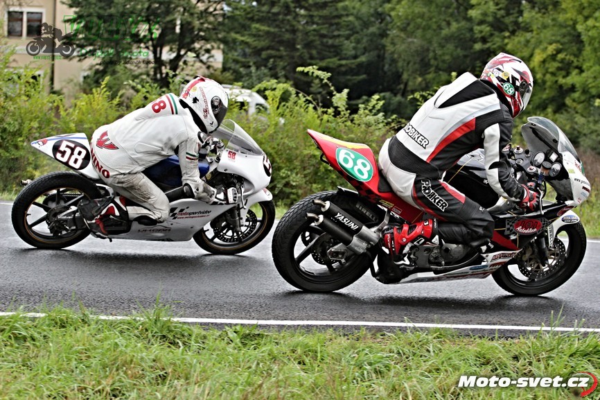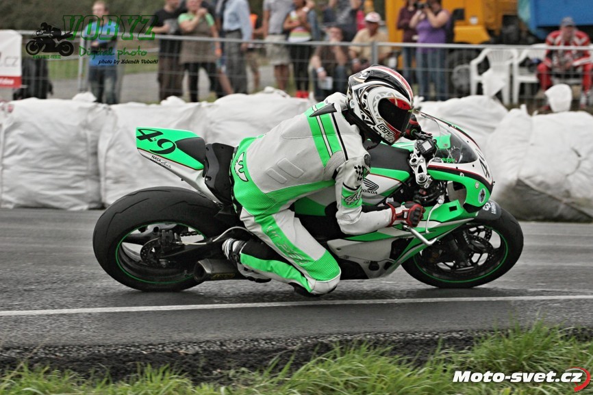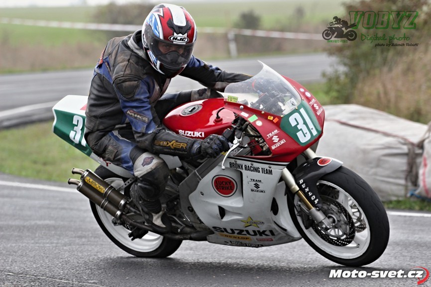 Kéž by se jim podařil splnit v příštím roce jejich plán zrekonstruovat silnici i ve zbylém přímém úseku mezi první a druhou křižovatkou. Letos to tam vypadalo jako na dálnici D1, díky mobilním patníkům, kterými byl vytyčen retardér na konci dlouhé rovinky. V kombinaci s vyjetými kolejemi na tomto úseku a s mokrým povrchem, ač se to na první pohled nezdálo, opravdu velmi nebezpečné řešení. A jejich použití na vnitřní straně silnice v rychlé pasáži před benzinovou pumpou - to už hlava nebrala ani přihlížejícím divákům. Jezdci průjezd tomuto samozřejmě přizpůsobili a vše bylo OK až do té doby, dokud v zaváděcím kole restartovaného mokrého závodu třídy 600 ccm v oném retardéru nedošlo