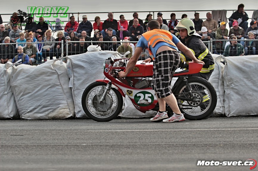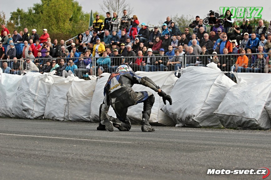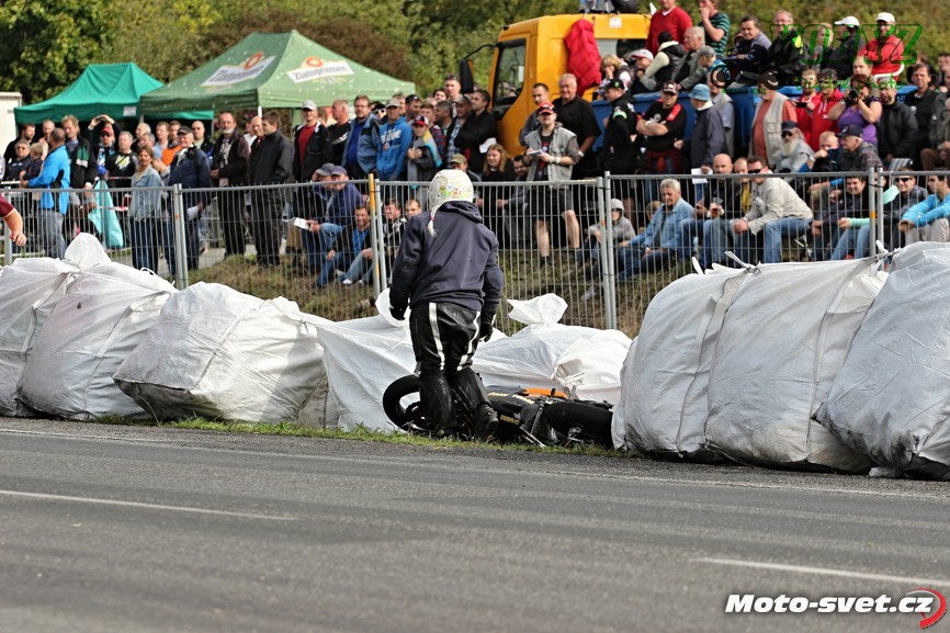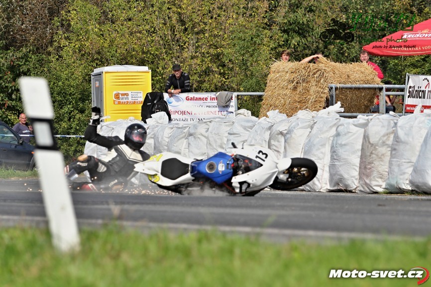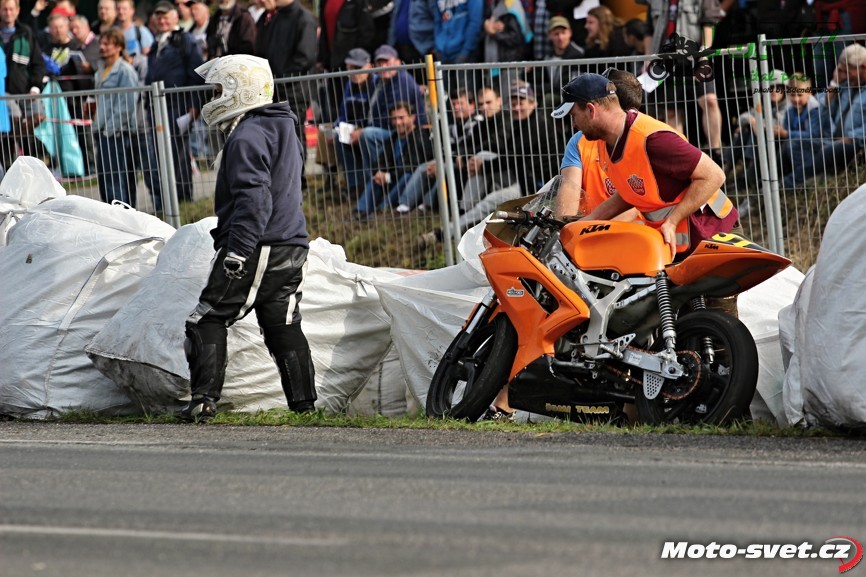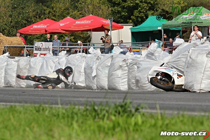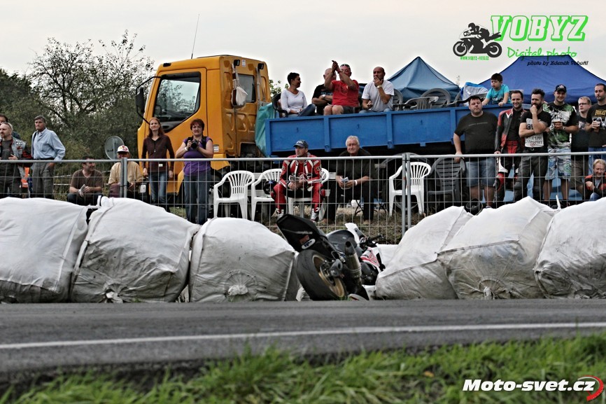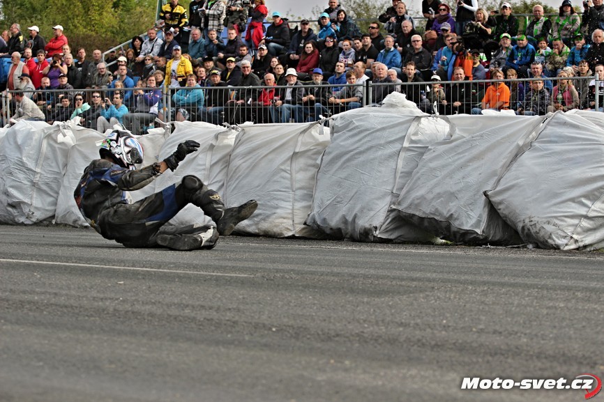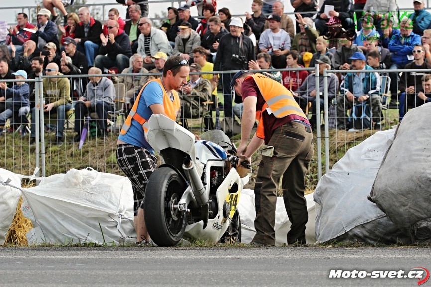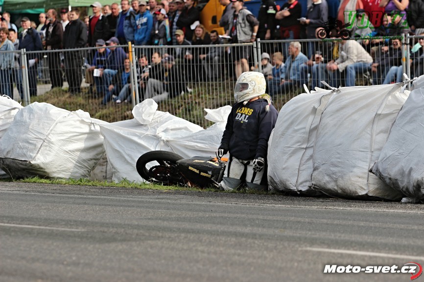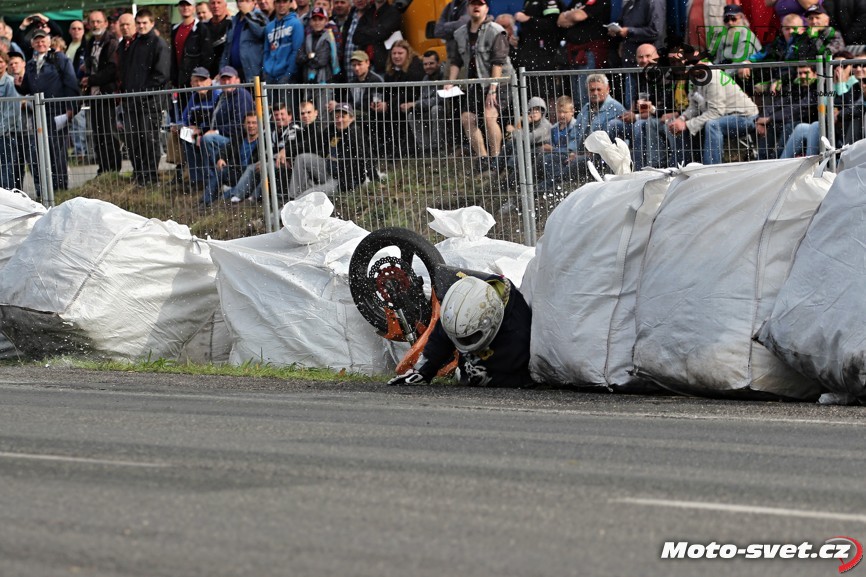 k těžkému pádu jednoho z jezdců. Z nevině vyhlížejících patníčků se rázem staly velmi tvrdé a pro člověka nebezpečně ostré překážky. To by se v roce 2014..! stávat nemělo. Je až s podivem, že během treninku i nedělních závodů proti tomuto vyznačení závodní tratě nikdo ze samotných jezdců neprotestoval. Vždyť právě oni by měli mít na bezpečnosti okruhu největší zájem a jejich připomínky by měli mít u pořadatelů velkou váhu.. Velká fotogalerie zde: