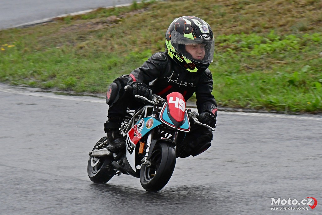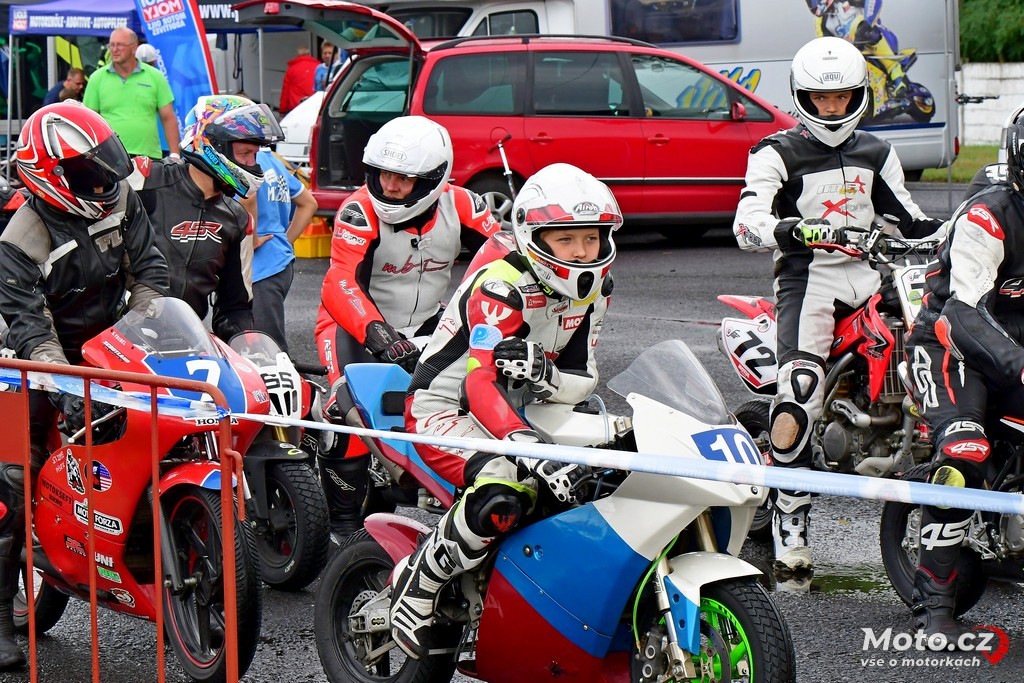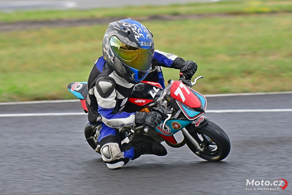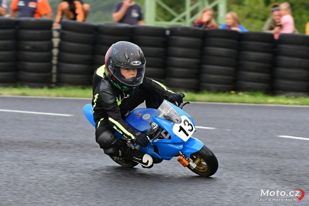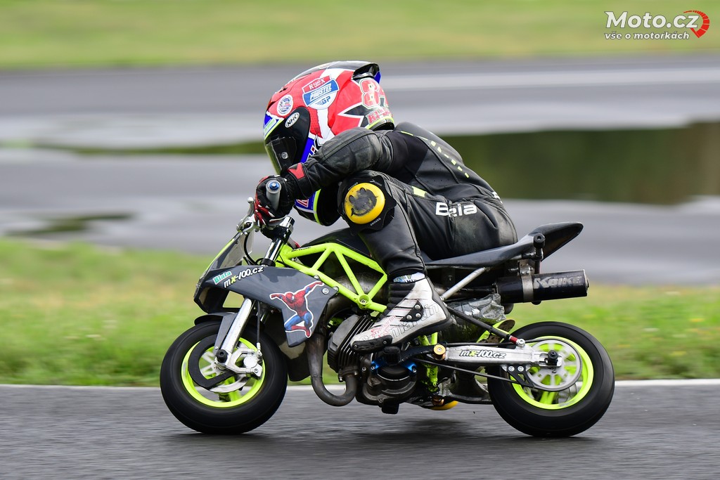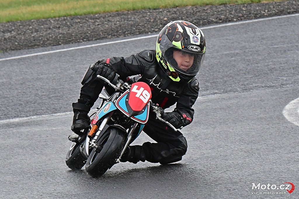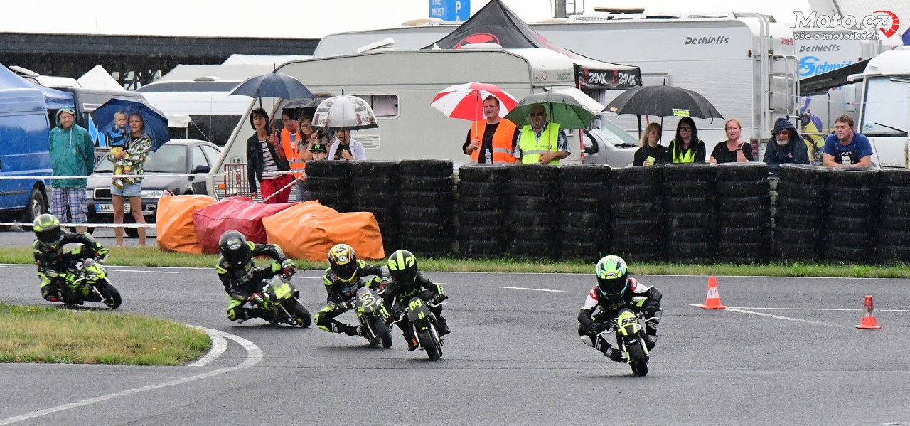 Fotogalerie z mosteckého polygonu, kde se v sobotu 10.8.2019 konal za deštivého počasí další závod mezinárodního mistrovství a přeboru České republiky miniracing ve třídách minimoto junior A+B, senior open 50, mini GP Stock+O+Open, Jawa 50 RS+GP, Minimotard a Akademie...