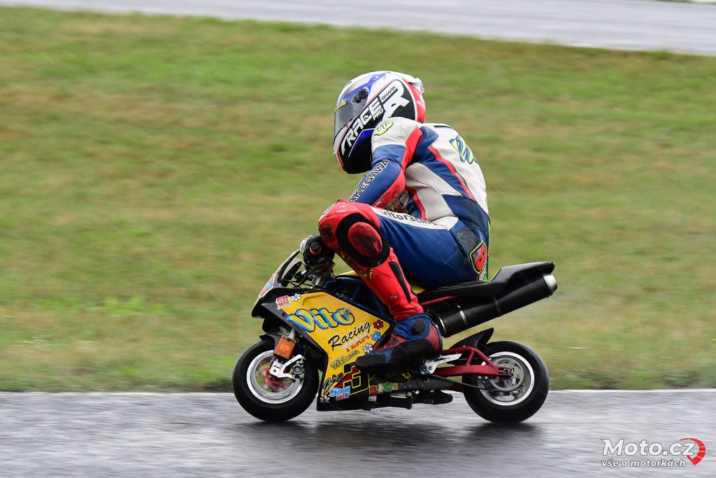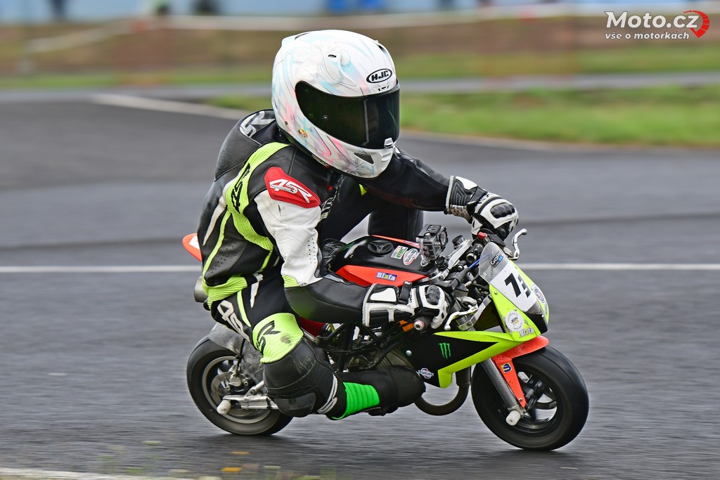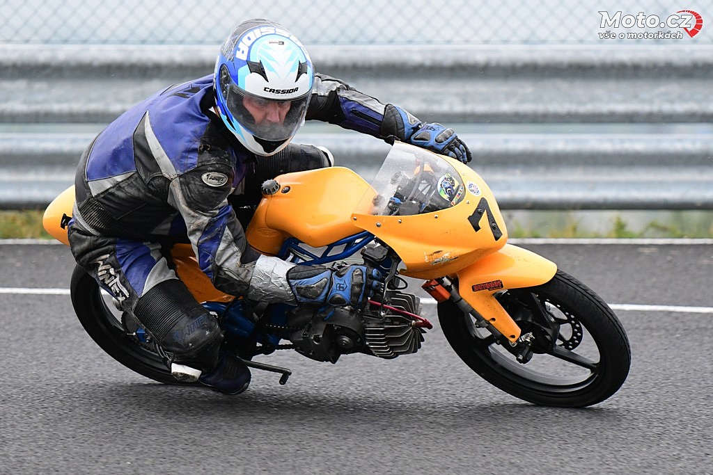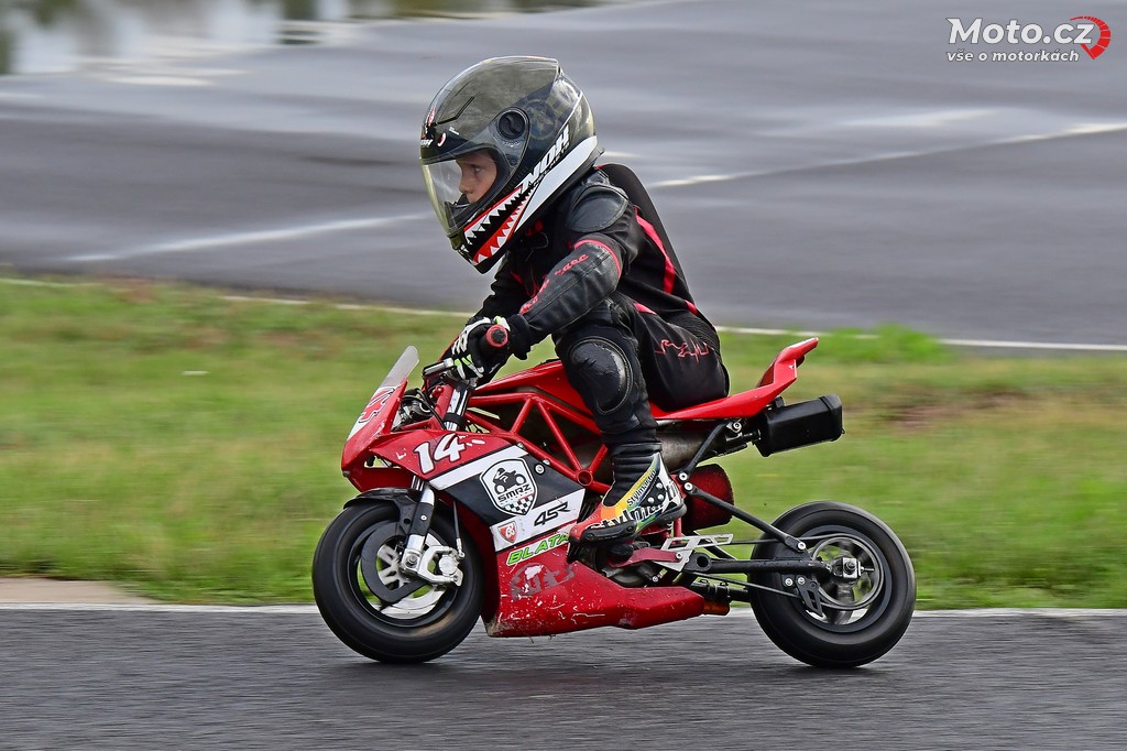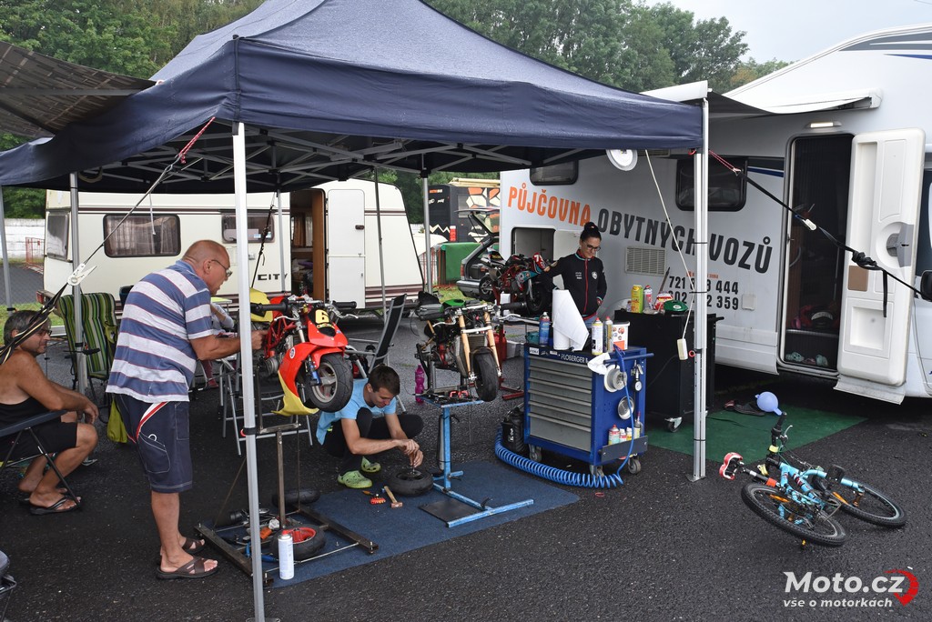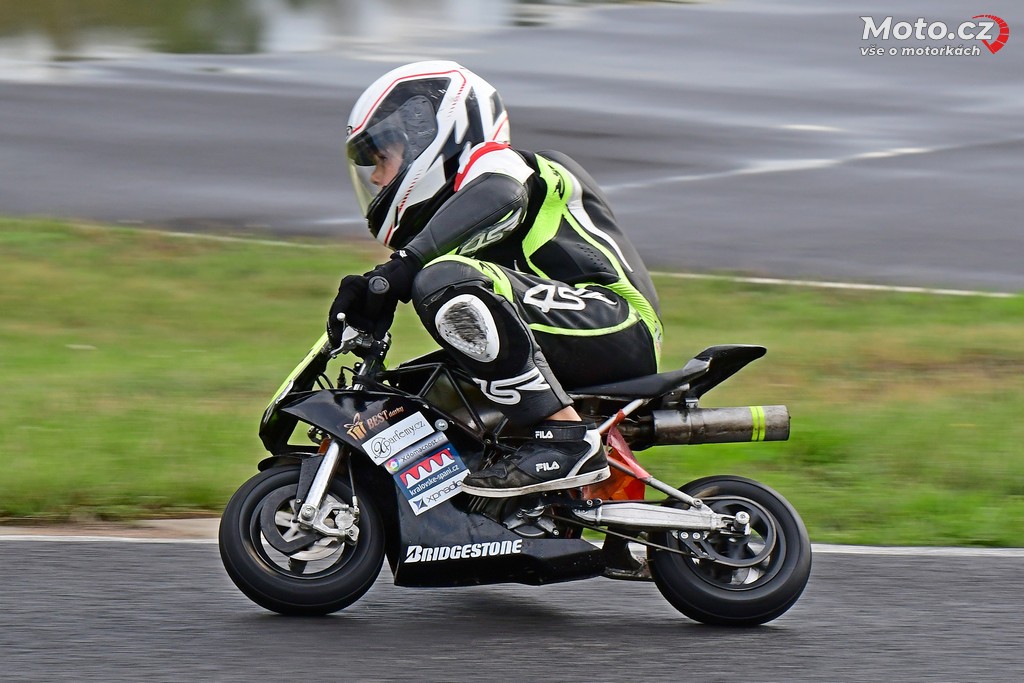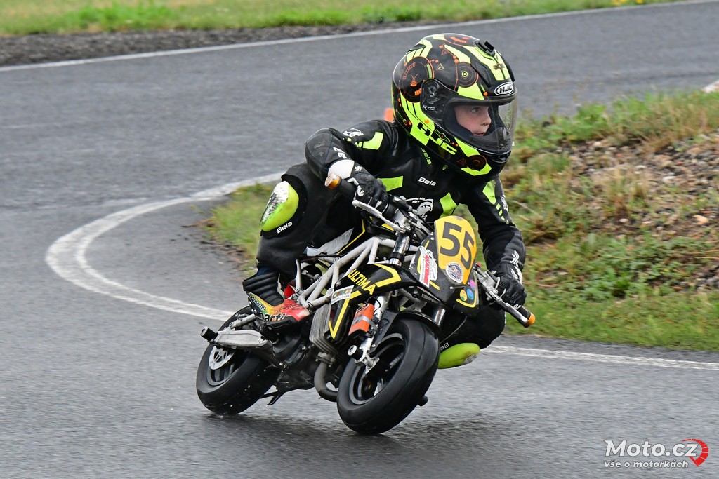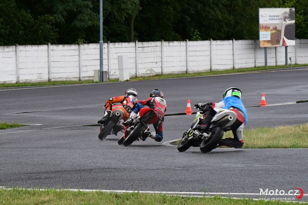 Fotogalerie z mosteckého polygonu, kde se v sobotu 10.8.2019 konal za deštivého počasí další závod mezinárodního mistrovství a přeboru České republiky miniracing ve třídách minimoto junior A+B, senior open 50, mini GP Stock+O+Open, Jawa 50 RS+GP, Minimotard a Akademie...