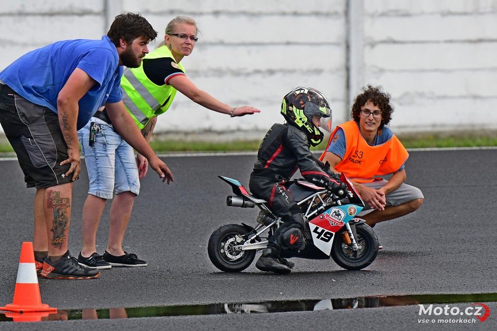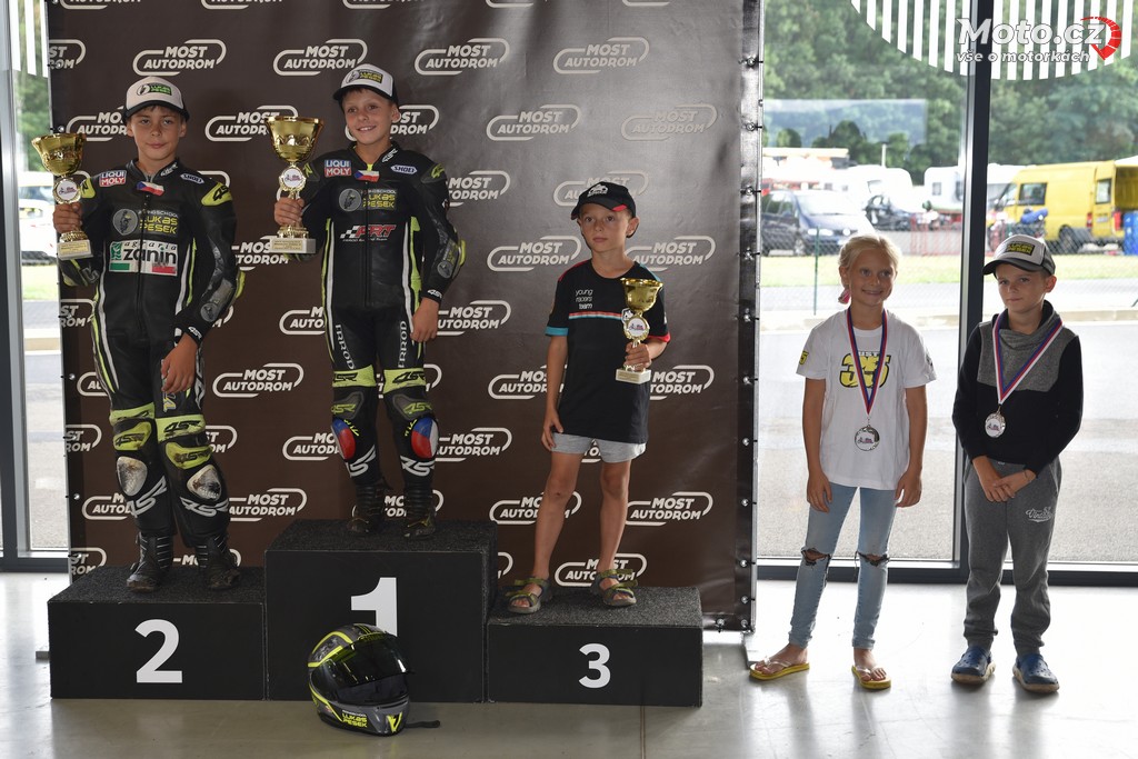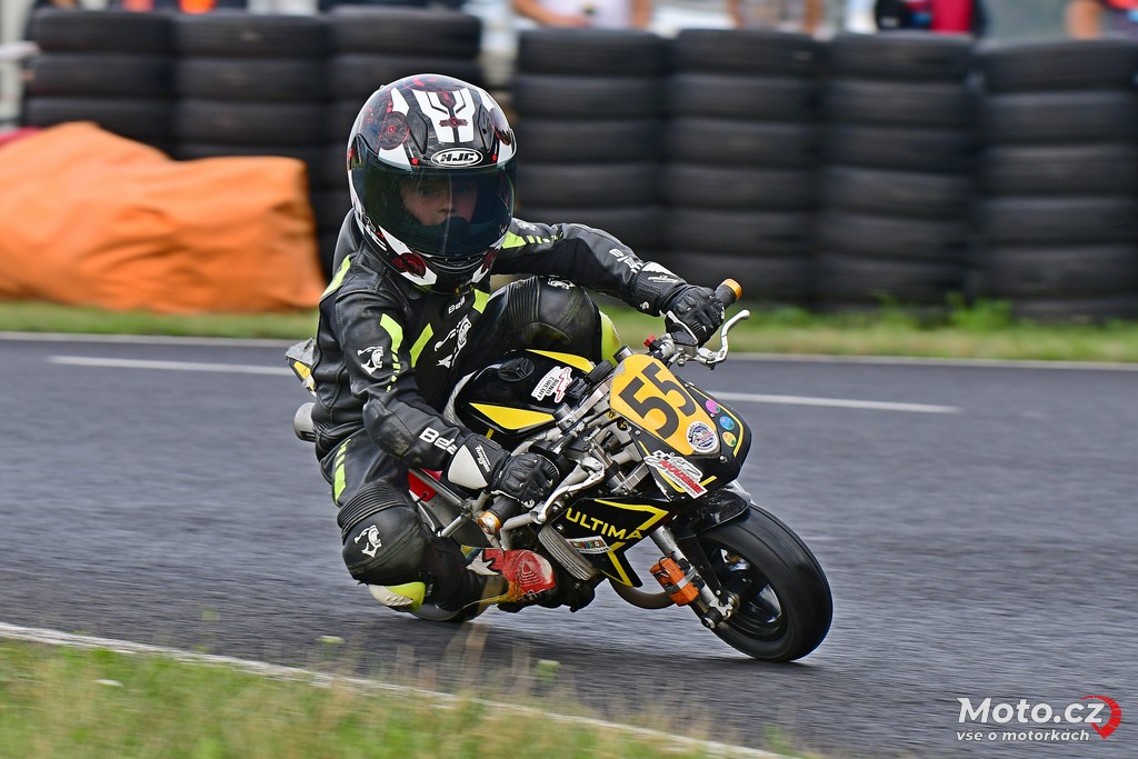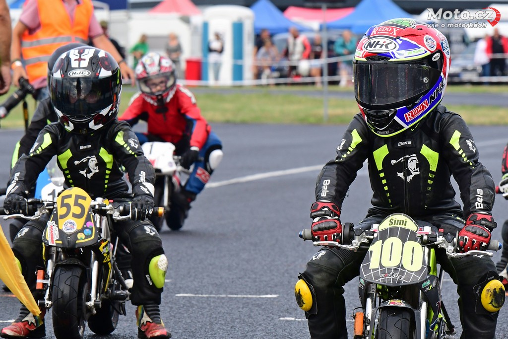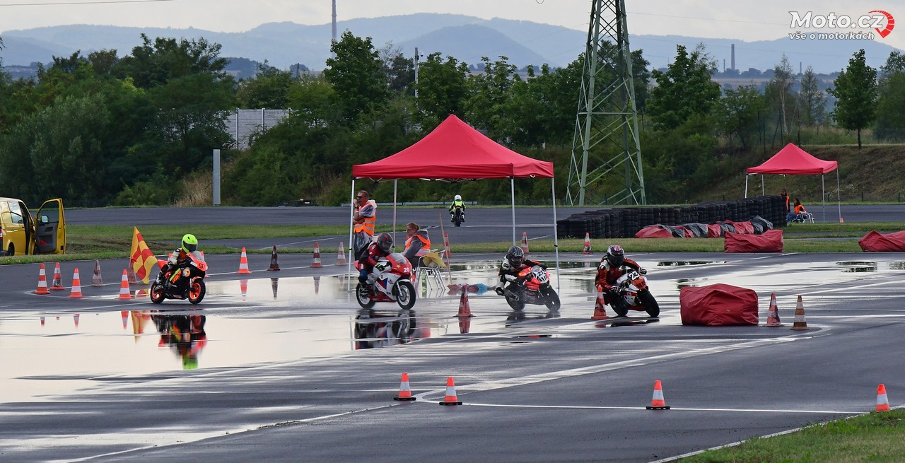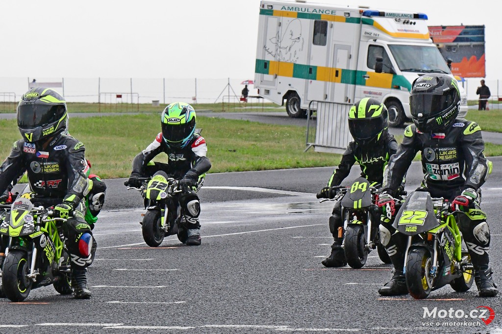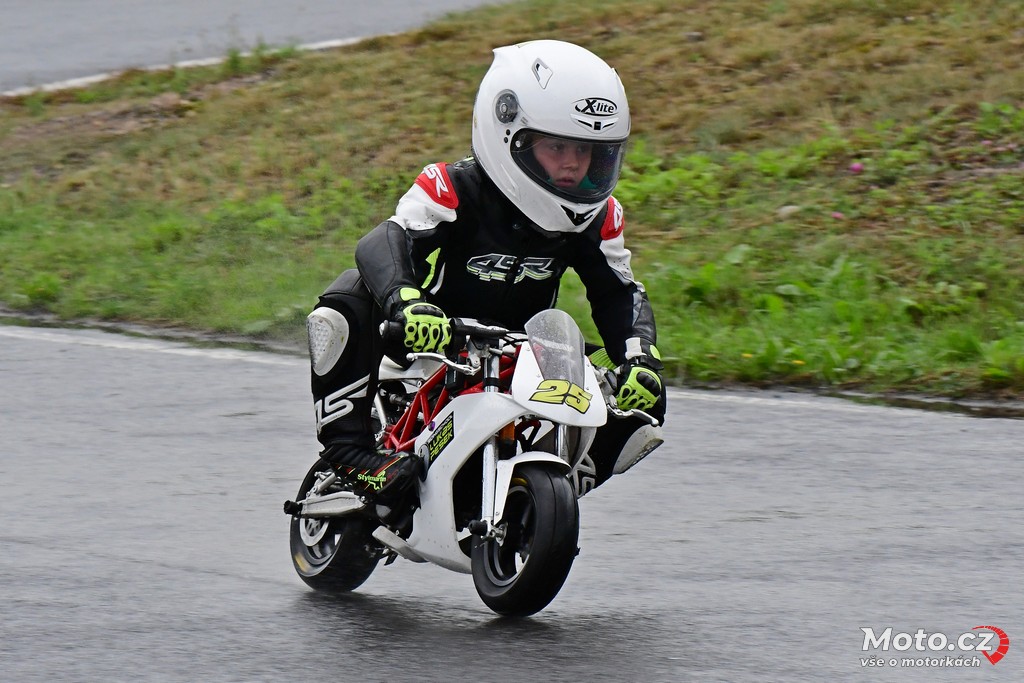 Fotogalerie z mosteckého polygonu, kde se v sobotu 10.8.2019 konal za deštivého počasí další závod mezinárodního mistrovství a přeboru České republiky miniracing ve třídách minimoto junior A+B, senior open 50, mini GP Stock+O+Open, Jawa 50 RS+GP, Minimotard a Akademie...