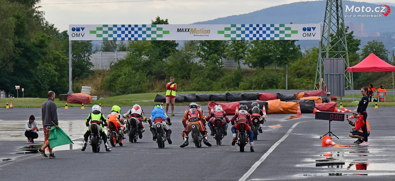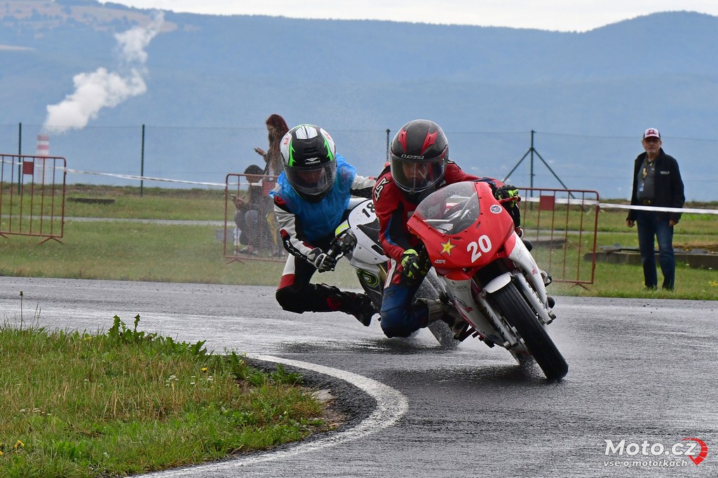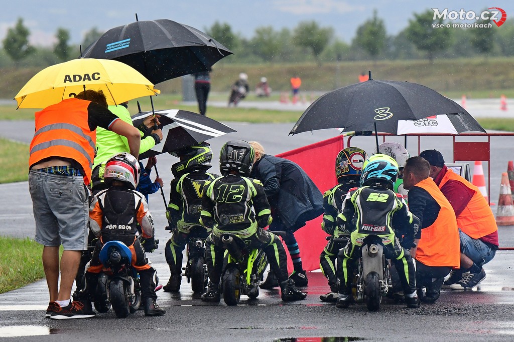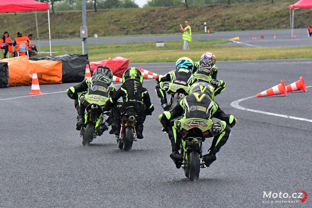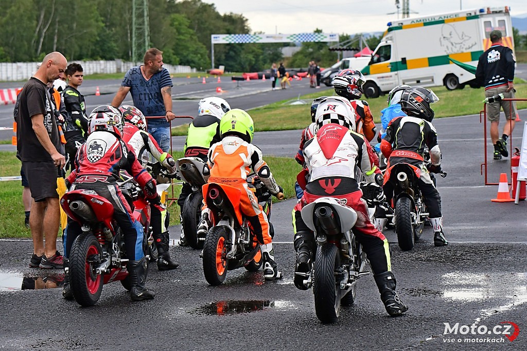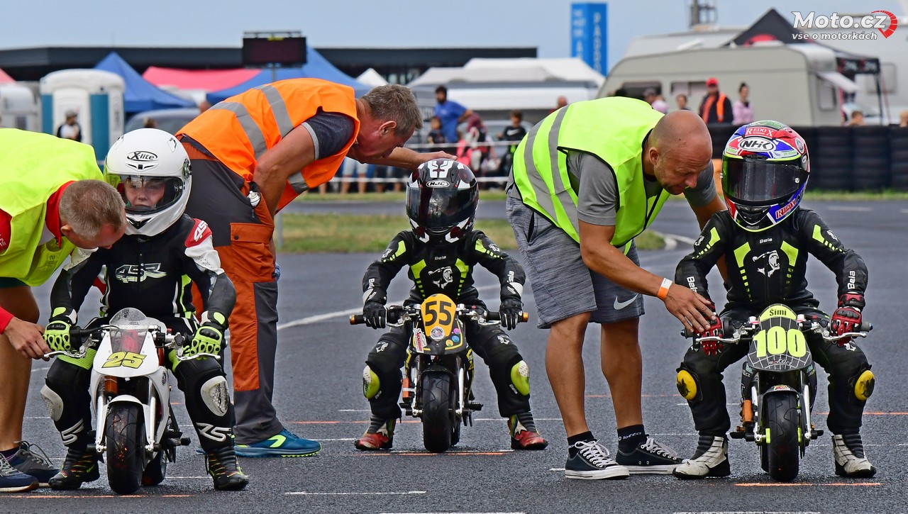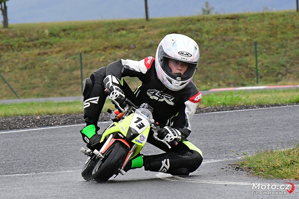Fotogalerie z mosteckého polygonu, kde se v sobotu 10.8.2019 konal za deštivého počasí další závod mezinárodního mistrovství a přeboru České republiky miniracing ve třídách minimoto junior A+B, senior open 50, mini GP Stock+O+Open, Jawa 50 RS+GP, Minimotard a Akademie...