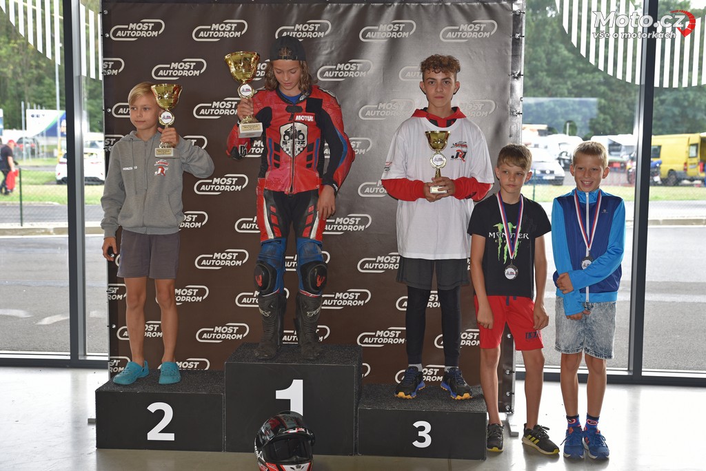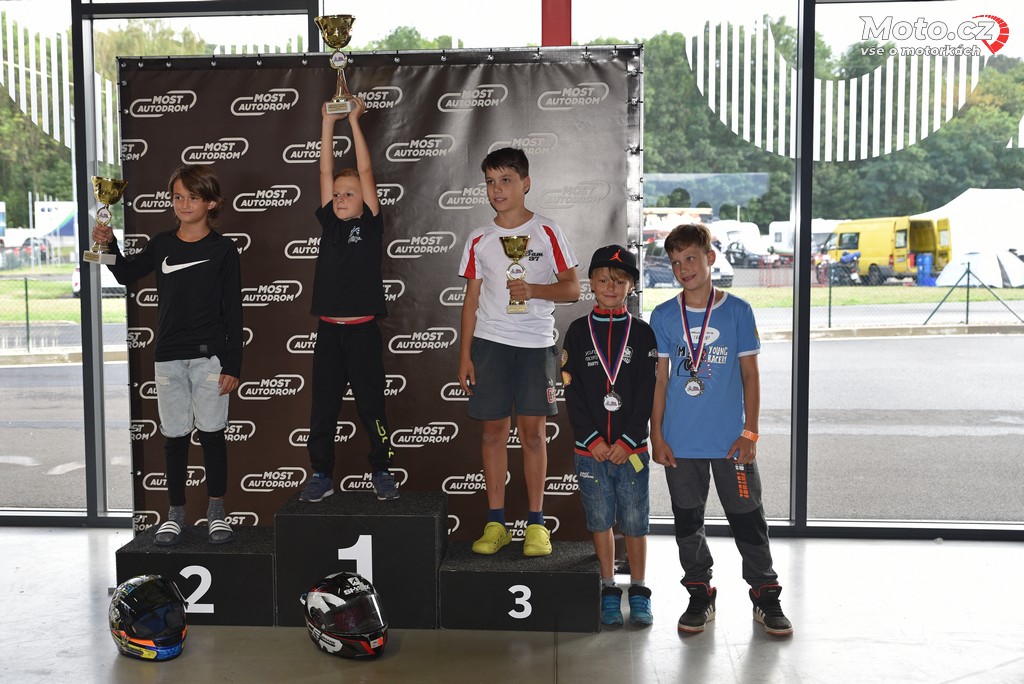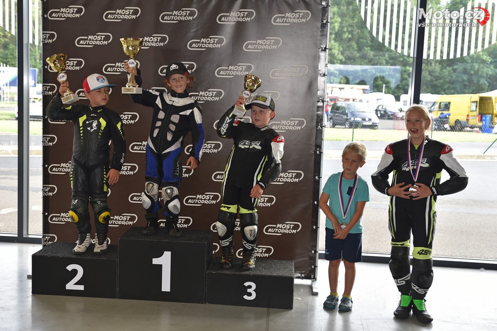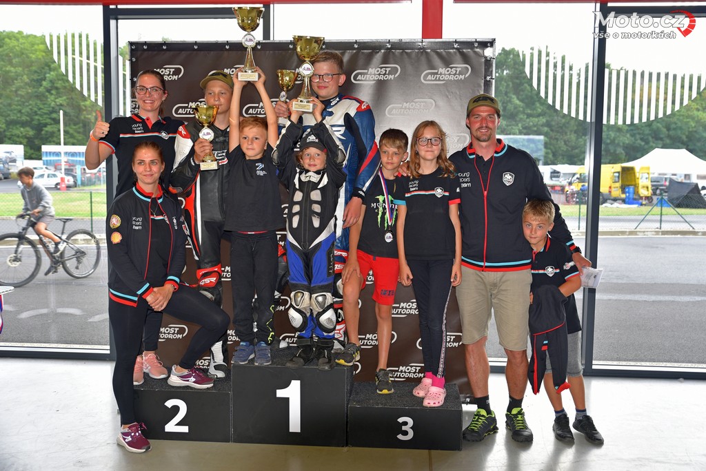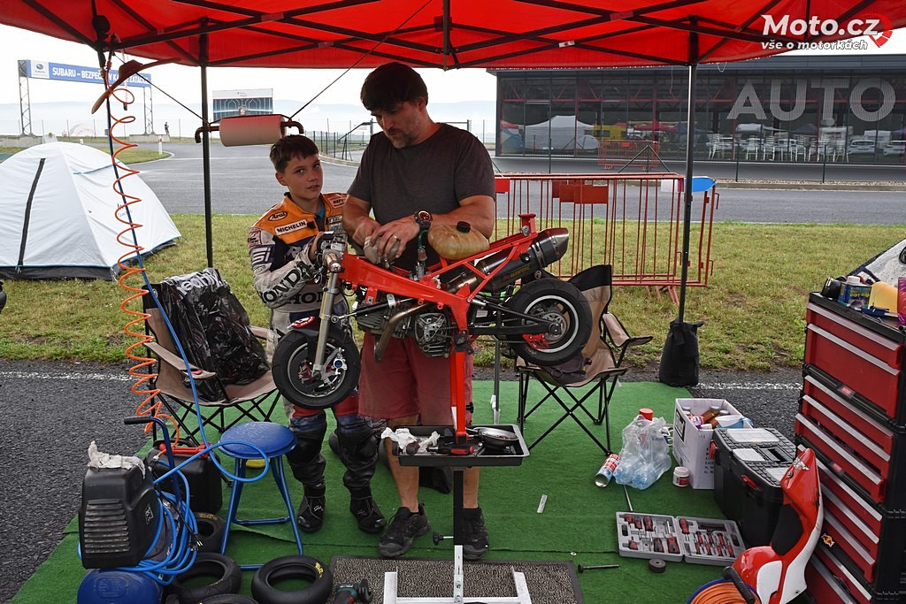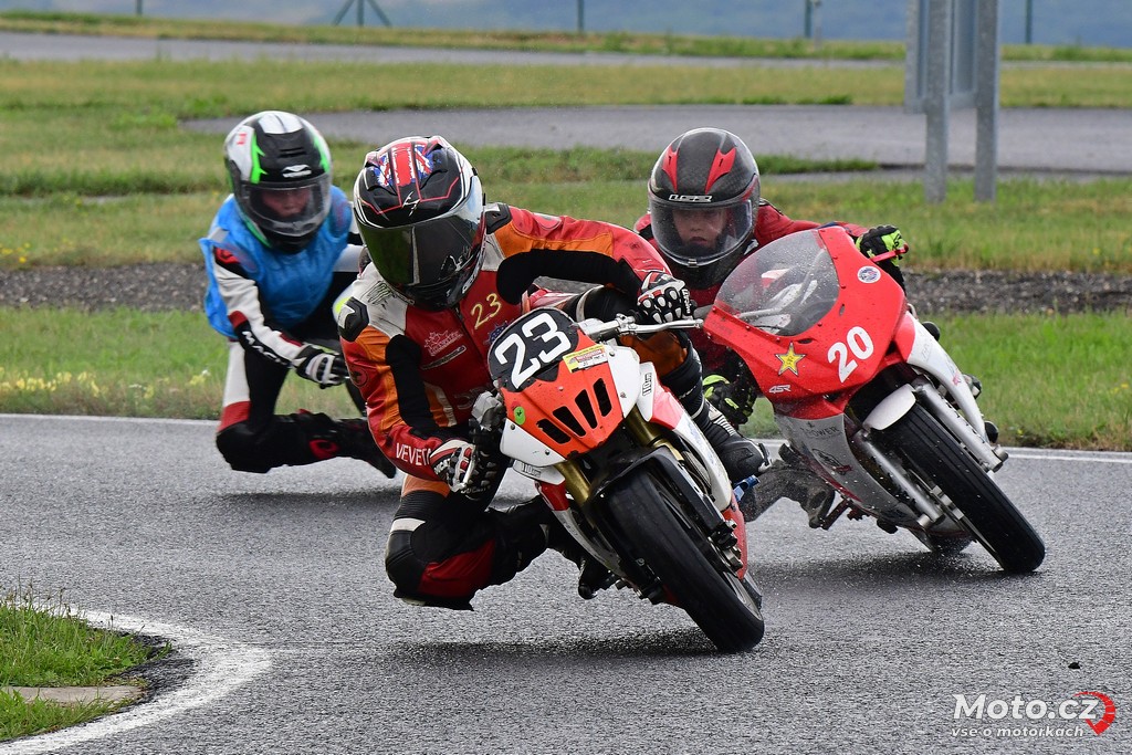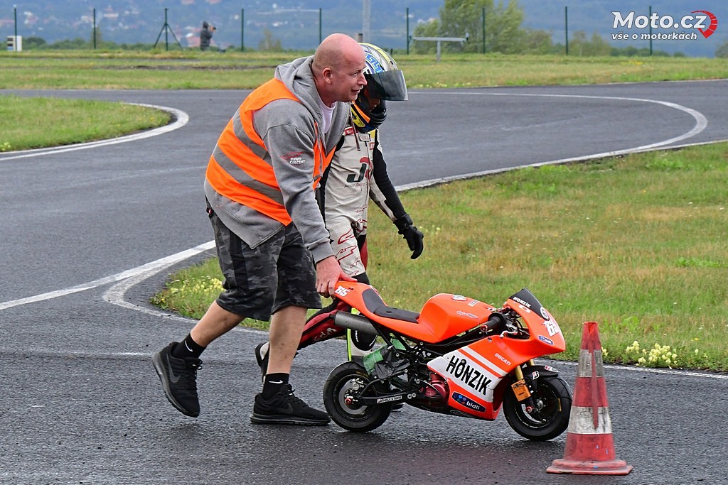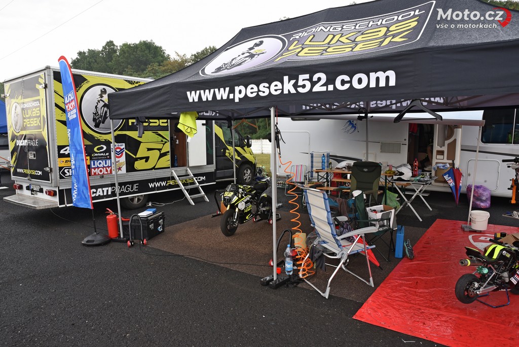 Fotogalerie z mosteckého polygonu, kde se v sobotu 10.8.2019 konal za deštivého počasí další závod mezinárodního mistrovství a přeboru České republiky miniracing ve třídách minimoto junior A+B, senior open 50, mini GP Stock+O+Open, Jawa 50 RS+GP, Minimotard a Akademie...
