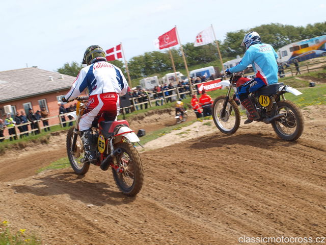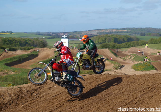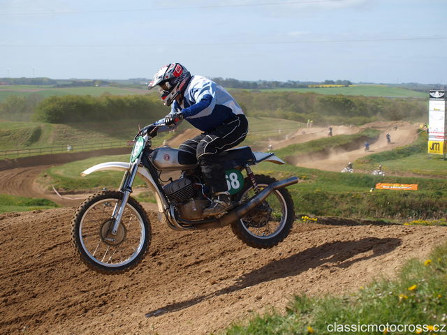 A už je tu sobotní ráno, počasí stále slunečné, trať dokonale připravena a v půl deváté už burácí areálem stroje nejmladších jezdců, vznáší se světle modrý dým dvoutaktních studených motorů a závodníci očuchávají první metry záludné trati. „Kolik si toho pamatuješ?“ ptá se David Karla po prvním 20ti minutovém seznámení. „Ty vole nic, maximálně jeden skok!“ To je zamotaný jak prase, ale tadle dlouhá zatáčka, ta mě baví…“ A už se trénuje dál, nastupují nejstarší a nejpočetnější jezdci, následují šedesátky, pak padesátníci a tak dále ještě jednou znovu, to už ale ve větším trapu, aby ne, vždyť druhý trénink je už měřený. Probíhají opravy a úpravy motocyklů, Davidovi teče přední vidlice, Honza Hrdina běsně šroubuje na své BSA, Jindra Greff si maže řetěz… Ve dvanáct je defilé jezdců, probíhají plamenné projevy, Dánové slaví 100 let založení jejich motoklubu, vcelku symbolicky uspořádáním takovýchhle závodů.
