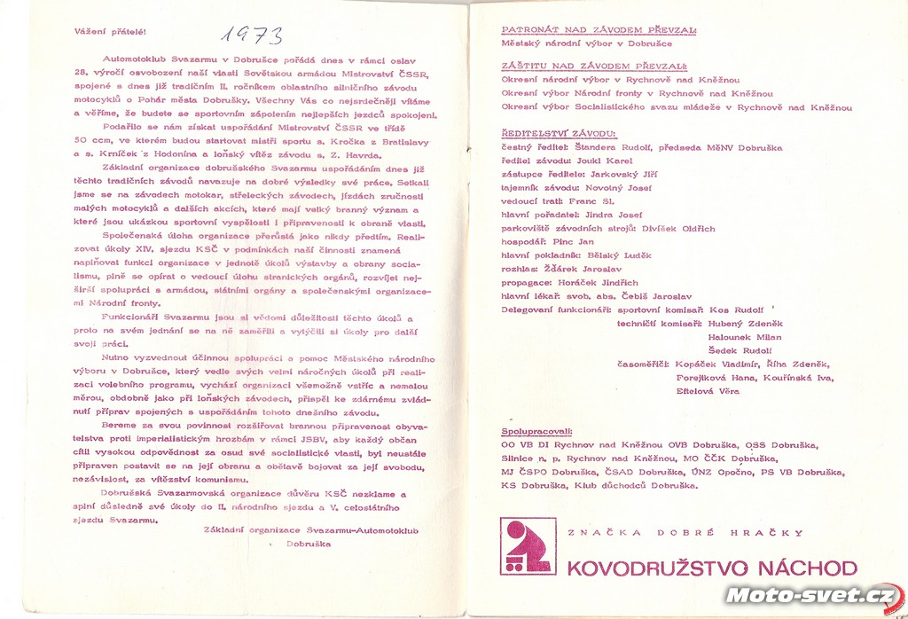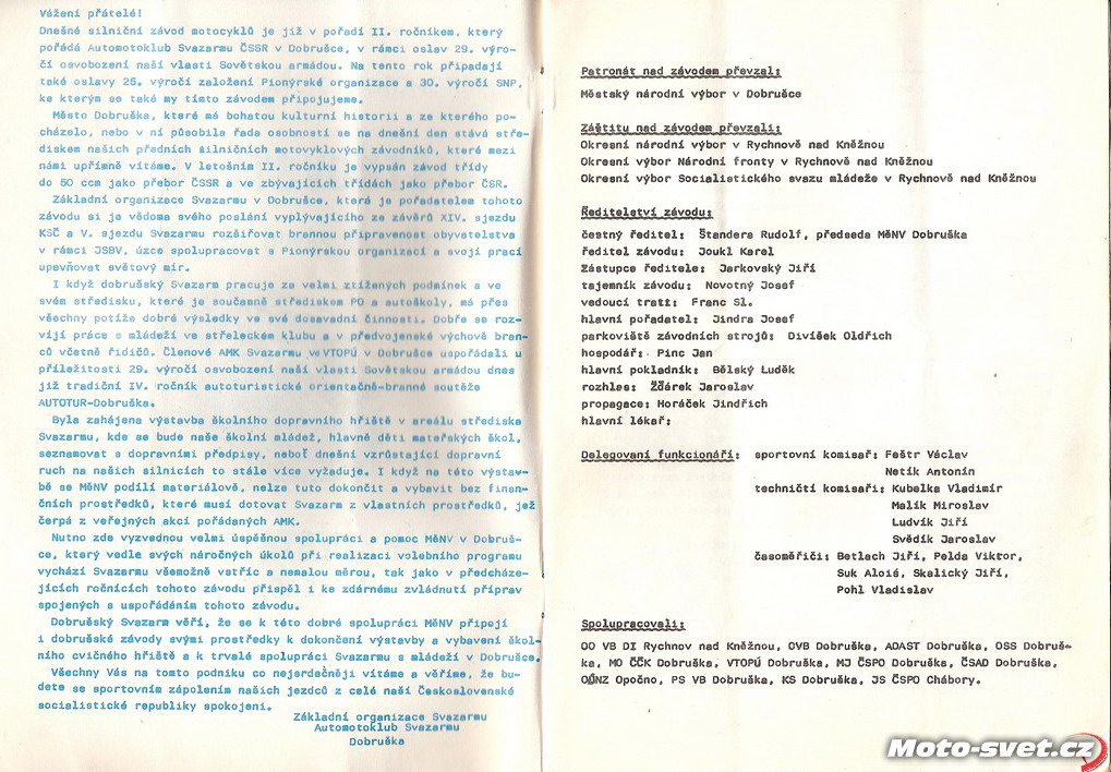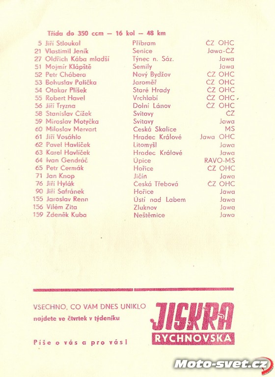 Pokud někdo vlastníte ve svém archivu fotky z tohoto nebo i z jiných závodů minulé doby, podělte se s ostatními příznivci motocyklových závodů. Napište e-mail na: , obratem se s Vámi spojíme. Jednotlivé články tak budou neustále aktualizovány o tyto nové dobové fotografie!