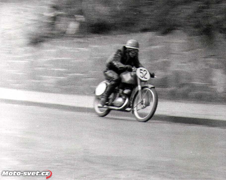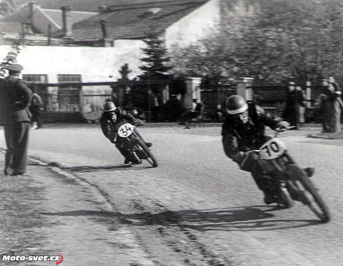 Boskovice 1953: J. NečasBoskovice 1953: #34 J. Nečas tř. 250ccBoskovice - motocykly vyjíždějí z prostor v n.p.Minerva..Boskovice 1952: M. Vlček před startem 250cc..