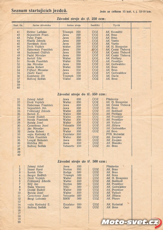 Pokud někdo vlastníte ve svém archivu fotky z tohoto nebo i z jiných závodů minulé doby, podělte se s ostatními příznivci motocyklových závodů. Napište e-mail na: , obratem se s Vámi spojíme. Jednotlivé články tak budou neustále aktualizovány o tyto nové dobové fotografie!