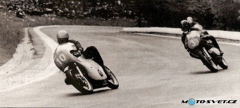 1969 - to byl rok! A všechno se to schumelilo okolo brněnského termínu. Týden před se zabil Ivy, celej týden to bylo takový divný. Konečně jsem měl alespoň pro trénink čtyřválec. Ale pro závod jsme raději zůstali u dosti spolehlivých jednolampovek. Byl jsem šestej a třetí (350 a 500), ale člověk nemohl mít žádnou radost. Nevím, čím to bylo, ale ten rok byla Veselka jako zakletá, lehnul tam kdekdo. A v neděli to odnesl Franta Boček, dostal se do takovýho hromadnýho pádu - těžkej úraz hlavy, příští týden zraněním podlehl.