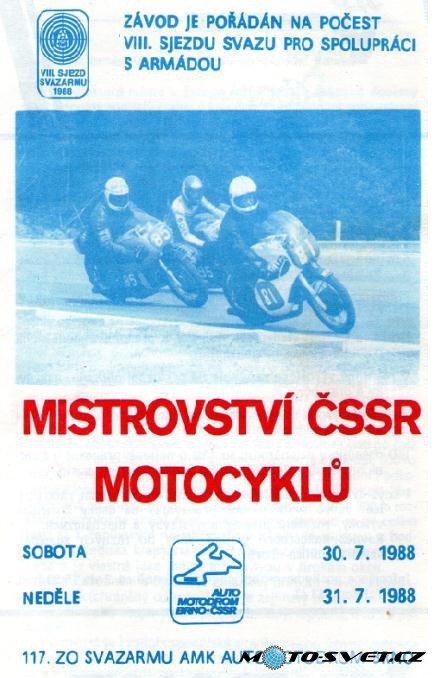 Nový motocykl Yamaha a výborně zajetý přeborový závod v Brně (2. místo) pomohl k dalšímu postupu – tentokrát již do Mistrovství ČSSR nejsilnější kubatury 500 ccm. Nebýt nečekaných technických závad, mohlo být těch věnců v roce 1988 víc...