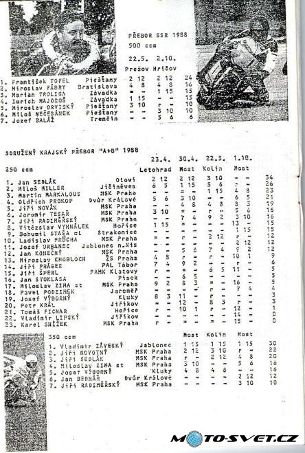 Až o několik týdnů později nás potěšil Karel Březina zprávou, že při rovnosti bodů na 4. a 5. místě postupují oba – takže po ročním působení v přeboru se těšíme na M ČSSR v kubatuře 500 ccm !