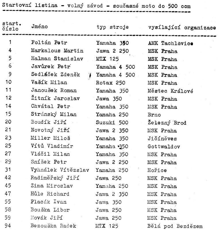 Pokud někdo vlastníte ve svém archivu fotky z tohoto nebo i z jiných závodů minulé doby, podělte se s ostatními příznivci motocyklových závodů. Napište e-mail na: , obratem se s Vámi spojíme. Jednotlivé články tak budou neustále aktualizovány o tyto nové dobové fotografie!