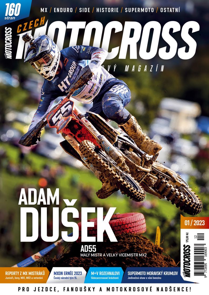 Čeští MX a sidecarcrossoví závodníci se letos zapsali do terénkové historie, když se skvělými výsledky blýskli doma i ve světě. A byť si pusu na špacír pouštěla spousta zlomyslných jazyků, uznání a respekt si zaslouží rovněž český nároďák za 15. místo z Motokrosu národů 2023. Připravili jsme rekapitulaci českého MX svátku – MXGP v Lokti. Přidali jsme stručný pokec o MXGP a třídě EMX. Tým úspěšných doplňuje „kluk z titulky“ – Adam Dušek, kterého jsme pořádně vyzpovídali na šampionském trůnu. Pro technicky zaměřené máme YCF pitbikes, testovačku Husqvarna endur 2024 a představení funglovky Yamaha YZ250F 2024. Pustili jsme se možná „na tenký led“ taky s elektrickými motorkami pro děti. Ale pořád to není důvod k pláči, že někdo volí elektriku.