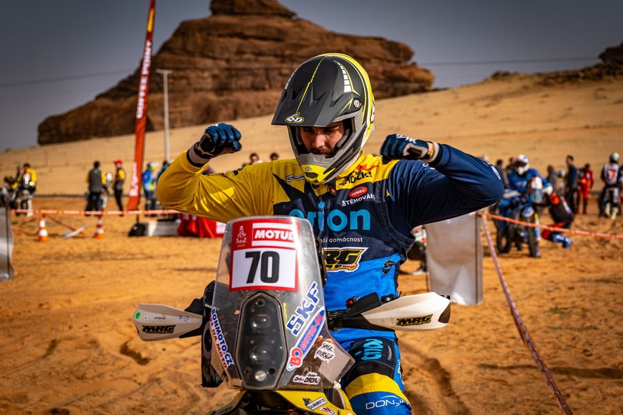 Bohužel se mi najednou nafoukl airbag, nevím z čeho. Asi jak jsem v dunách jel rychle a skákal, tak se to v kombinéze otevřelo pod tím tlakem. Pak jsem měl dva menší pády, jinak vše v pohodě. Zároveň nám pořadatel připravil hodně speed limitů, ze 150 km/h jsme museli brzdit na 30 km/h. Žaludek z toho málem vyletěl ven,“ popsal Michek, který byl s výsledkem spokojený. Jakékoliv umístění v první dvacítce je v nadupané motocyklové kategorii pro českého jezdce velkým úspěchem. V průběžném pořadí navíc drží desátou příčku a ztrácí pouze 22 minut na lídra.